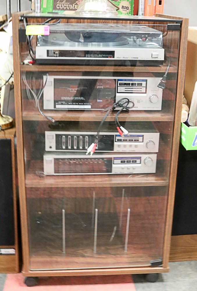FISHER TURNTABLE IN CABINET WITH RADIO RECEIVER