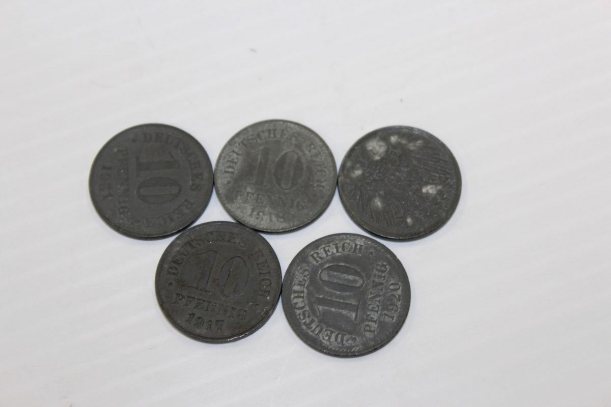 FIVE 1917-22 GERMAN 10 PFENNIG COINS