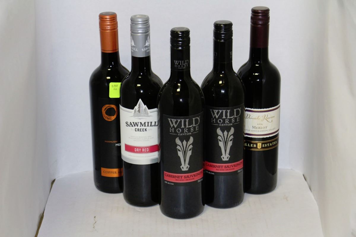 FIVE ASST BOTTLES OF RED WINE