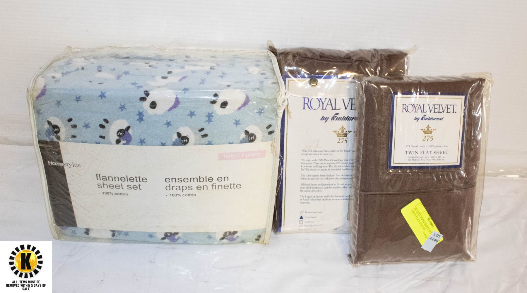 FLANEL TWIN SHEET SET + TWO TWIN FLAT SHEETS