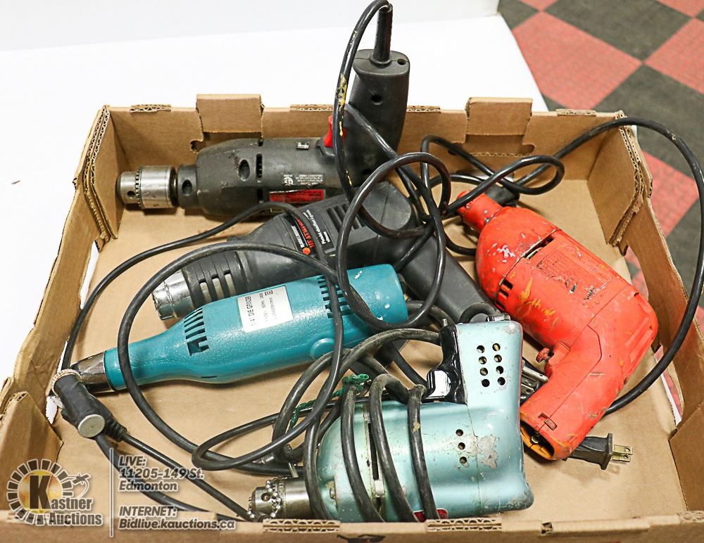 FLAT LOT OF PLUGIN TOOLS DRILLS, AND DIE GRINDER