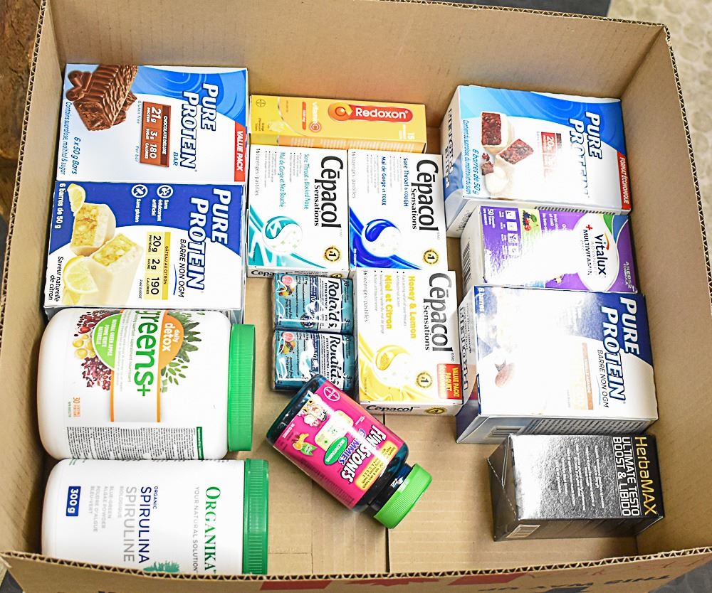 FLAT LOT OF PROTEIN BARS AND ASSORTED PRODUCTS