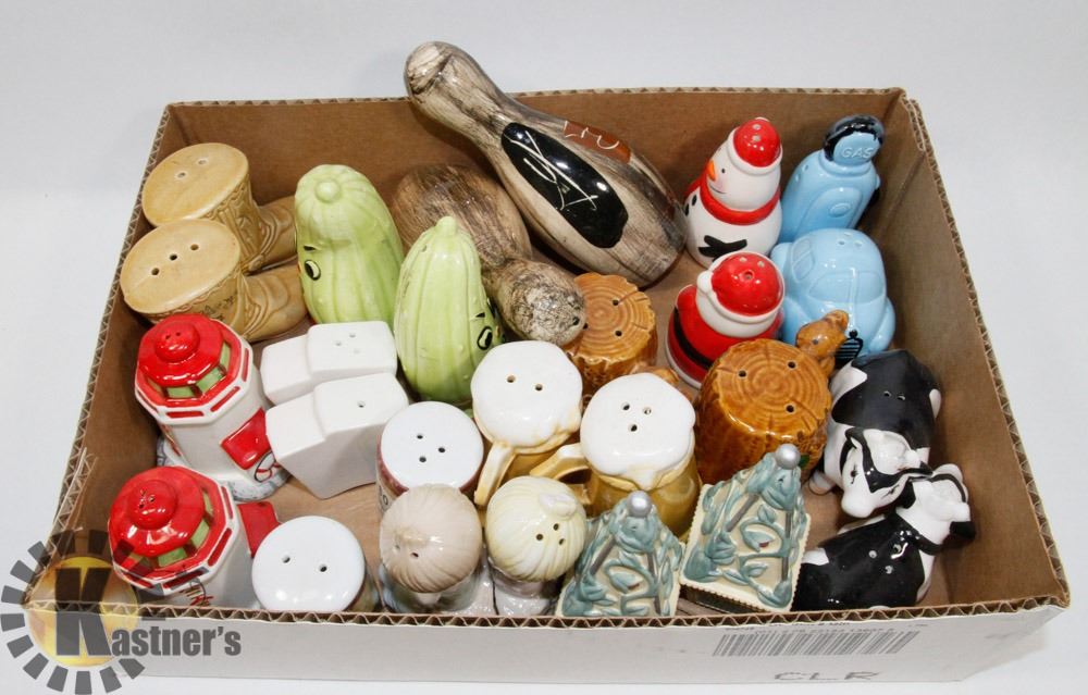 FLAT OF 13 ASST COLLECTIBLE SALT & PEPPER SHAKERS.