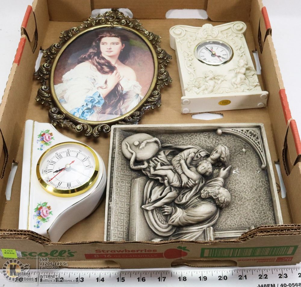 FLAT OF 2 CLOCKS AND 2 WALL DECORATIONS