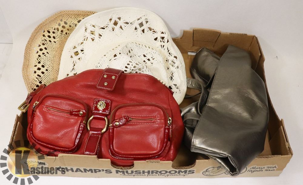 FLAT OF 2 NEW WOMEN HATS AND RED ORIGINAL LUCE BAG