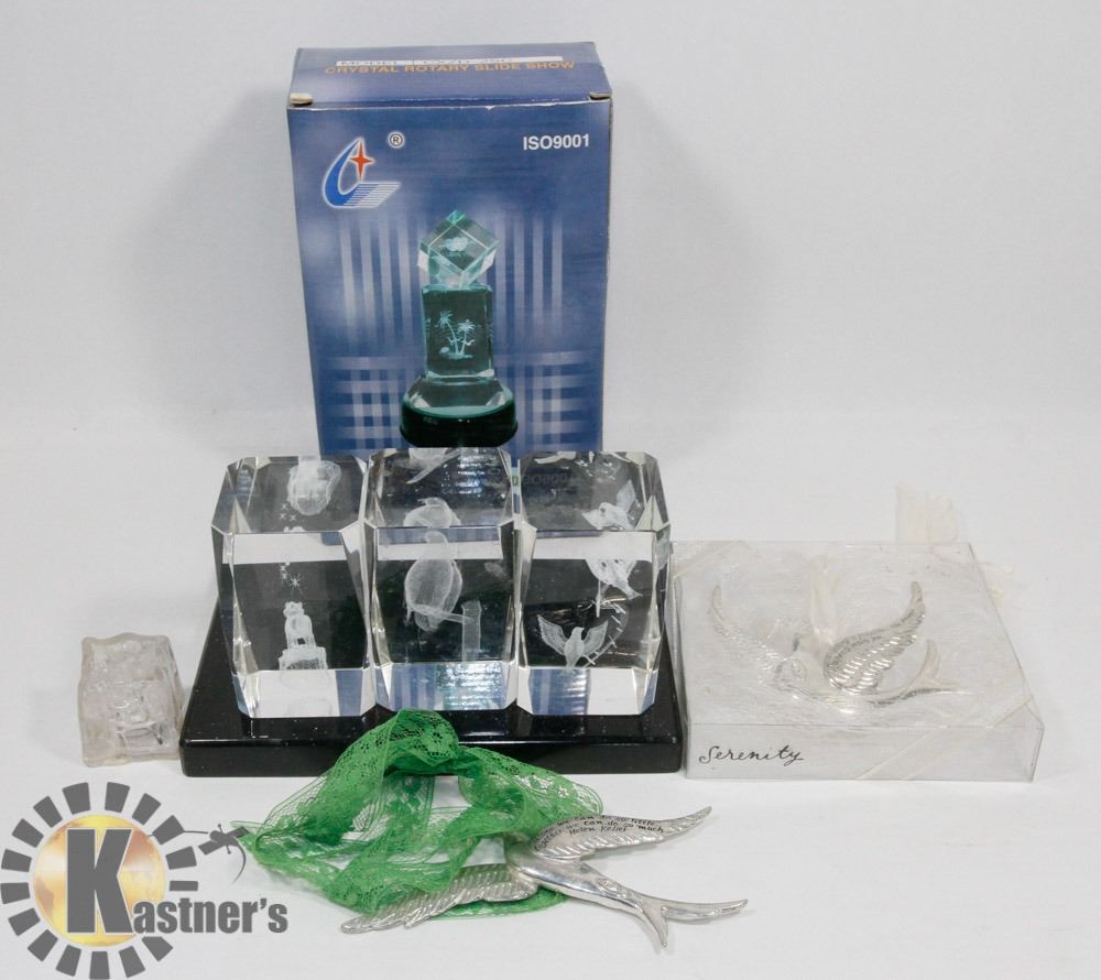 STAND AND BASE AND 2 SILVER DOVE ORNAMENTS. HOME