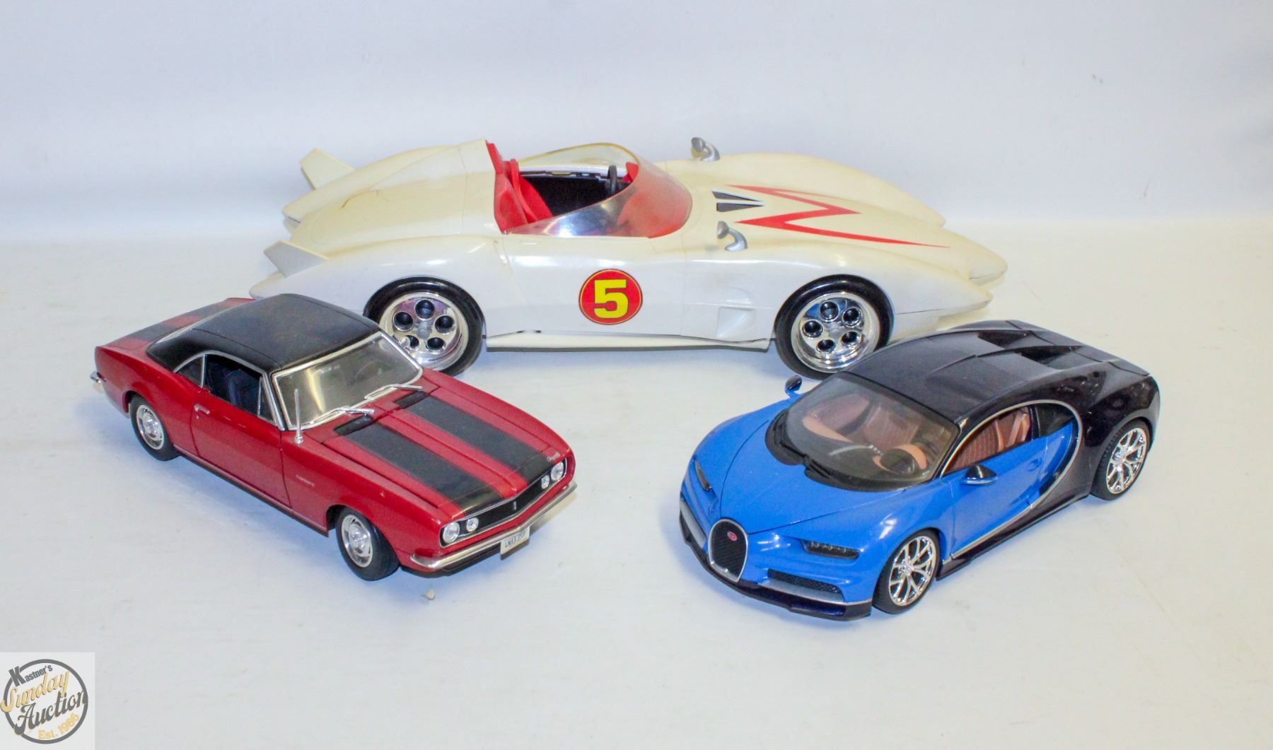 FLAT OF 3 MODEL CARS - SPEED RACER, CHEVY CAMARO,