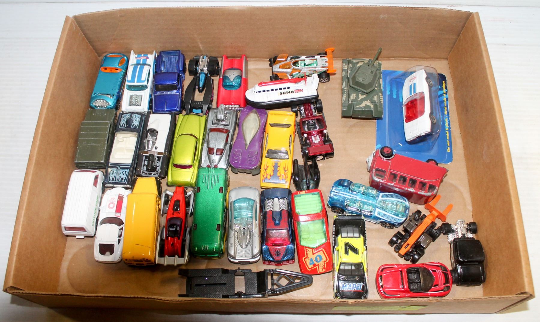 FLAT OF 32 ASSORTED CARS, MOSTLY HOT WHEELS