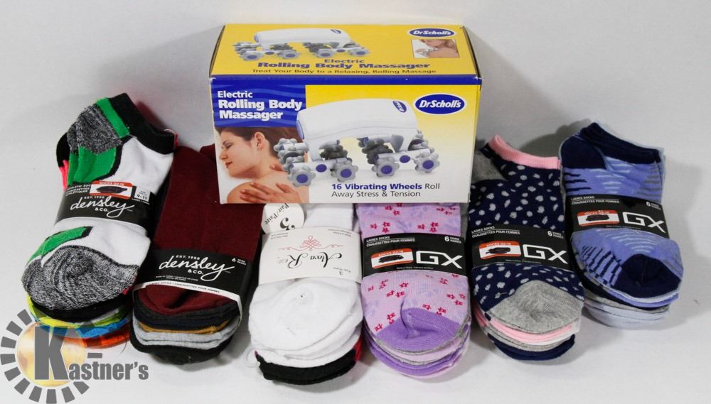 VARIETY OF COLORS SIZE 9-11 W/NEW ELECTRIC ROLLING BODY MASSAGER. MISC