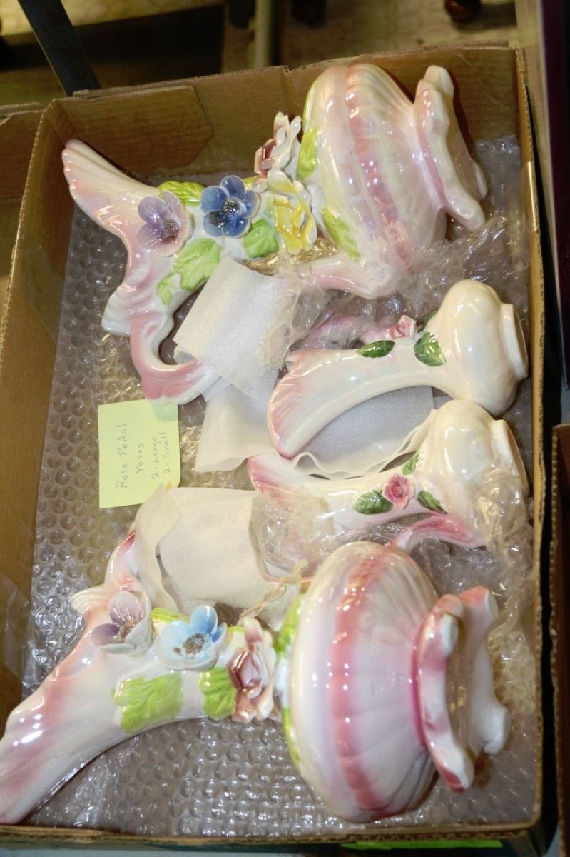 FLAT OF 4 ROSE PETAL VASES INCL. 2 LARGE & 2 SMALL