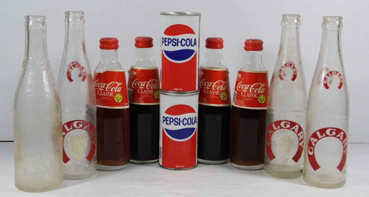 CANS AND 4 OLDER UNOPENED BOTTLES OF COCA COLA