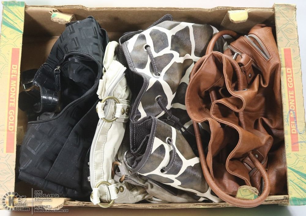 FLAT OF 5 PURSES - VARIOUS NAMES AND STYLES