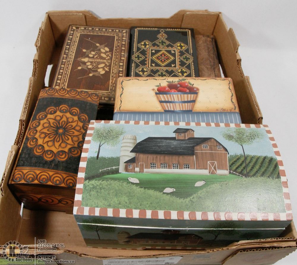FLAT OF 6 DECORATIVE WOOD BOXES