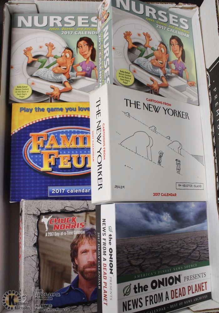 G)6 BRAND NEW 365 DAY DESK TOP CALENDARS , YORKER, FAMILY FEUD, CHUCK NORRIS, NURSES TRIVIA ETC