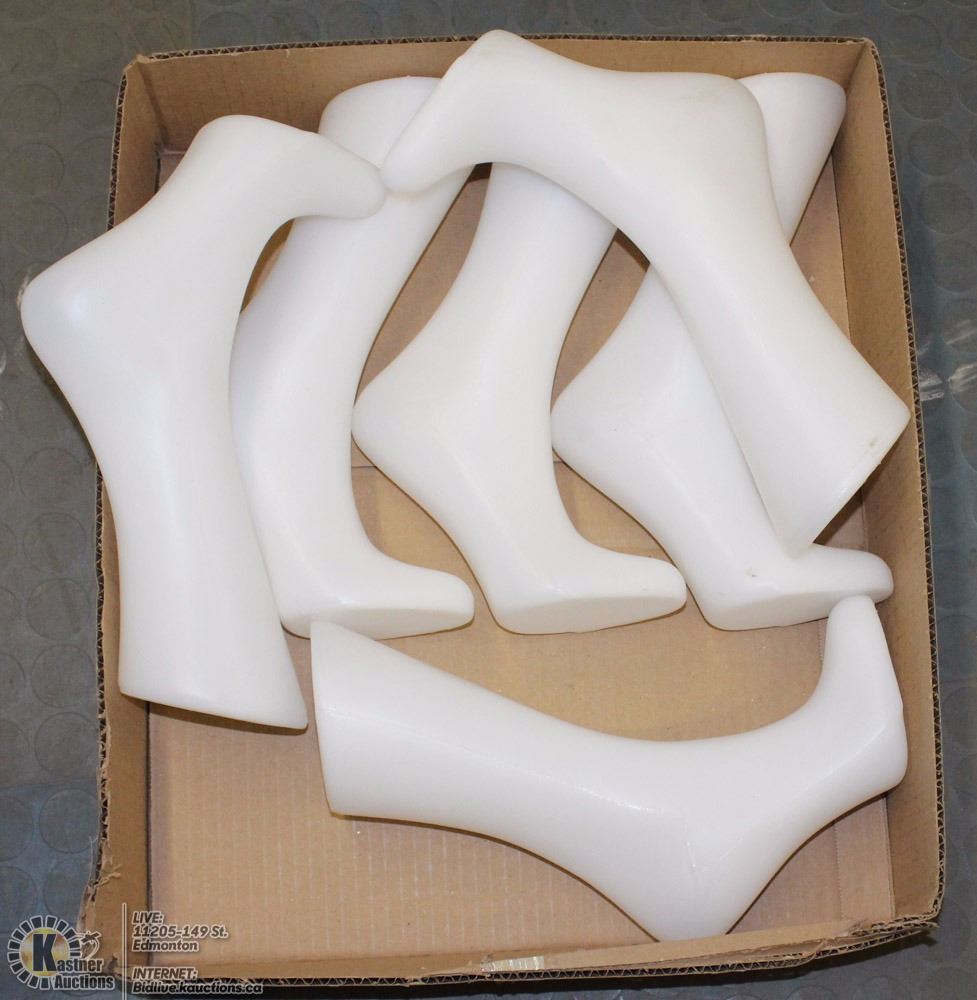 FLAT OF 6 WHITE PLASTIC FOOT DISPLAYS