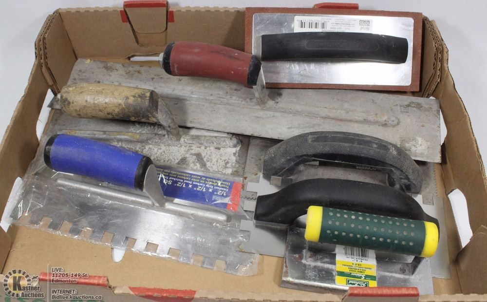 FLAT OF 7 ASSORTED DRYWALL TOOLS