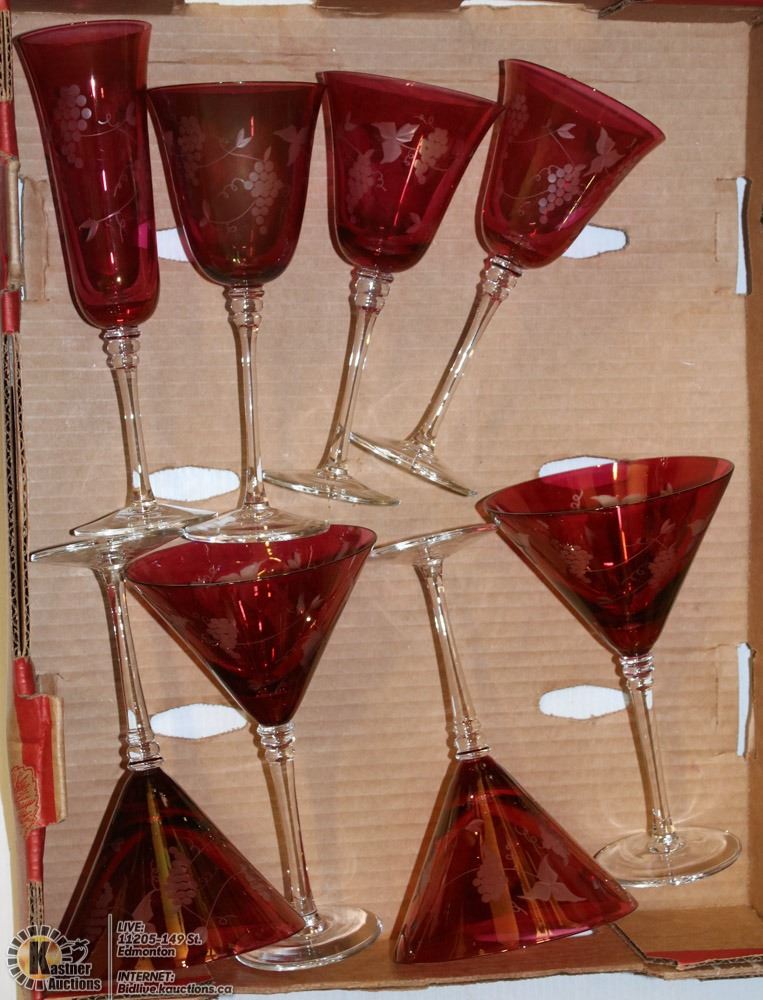 FLAT OF 8 PC OF RED CRYSTAL STEM WARE