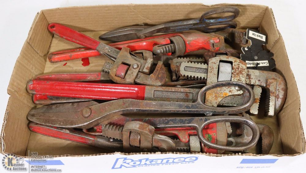 FLAT OF 8 PIPE WRENCHES AND 2 CUTTERS