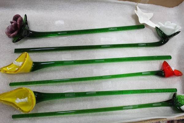 FLAT OF ART GLASS FLOWERS