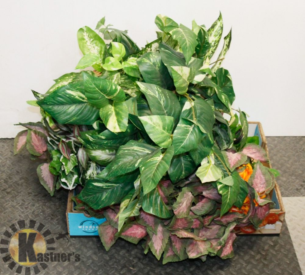 FLAT OF ARTIFICIAL PLANTS AND HANGERS.