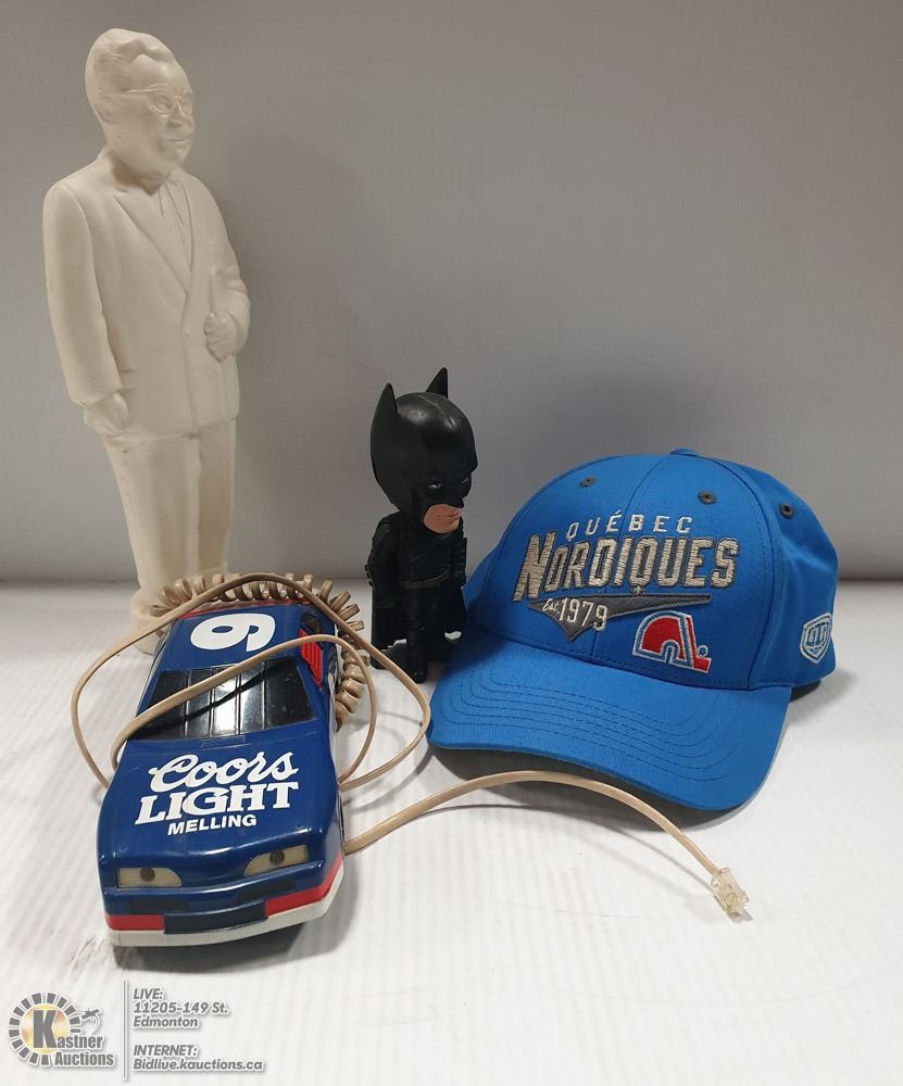 SANDERS/ COORS RACECAR PHONE/ BATMAN BOBBLE HEAD