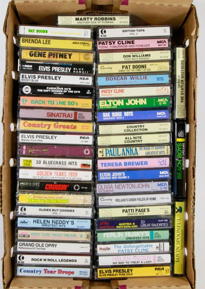 FLAT OF ASSORTED CASSETTE TAPES INCLUDING ELVIS