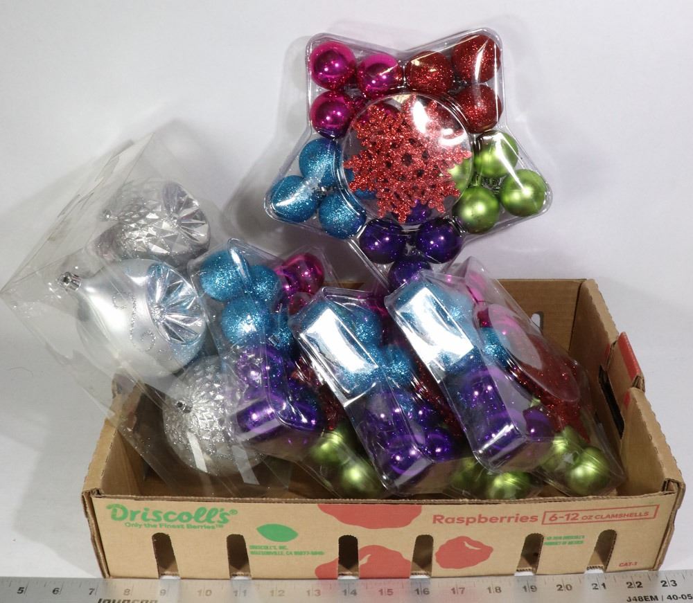 FLAT OF ASSORTED CHRISTMAS TREE BALLS AND
