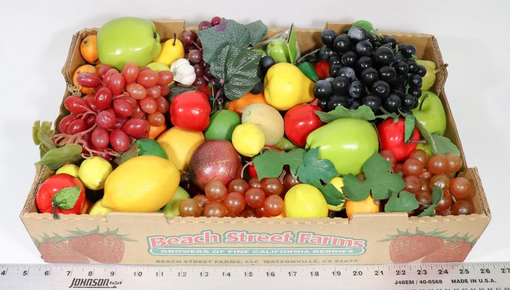 APPLES, KIWI, PEARS, LEMON, LIME, PLUM, GRAPES, PEPPER, ORANGES, GARLIC ETC. HOUSEHOLD.