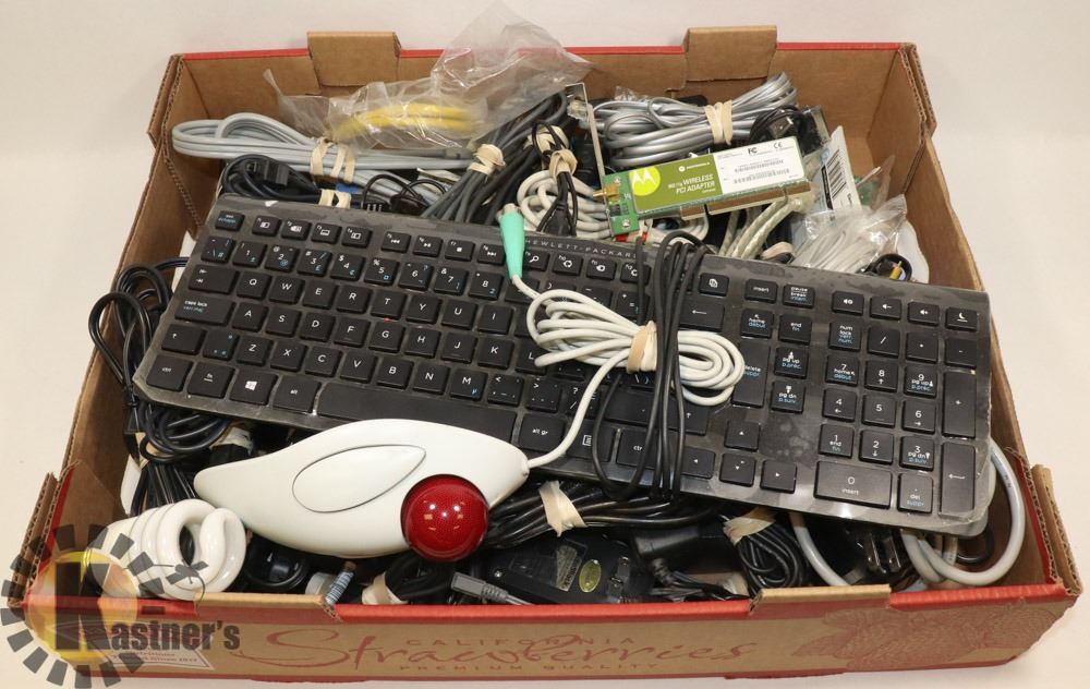 SUPPLIES, HP KEYBOARD, LOGITECH ERGONOMIC MOUSE, CABLES, AND MORE