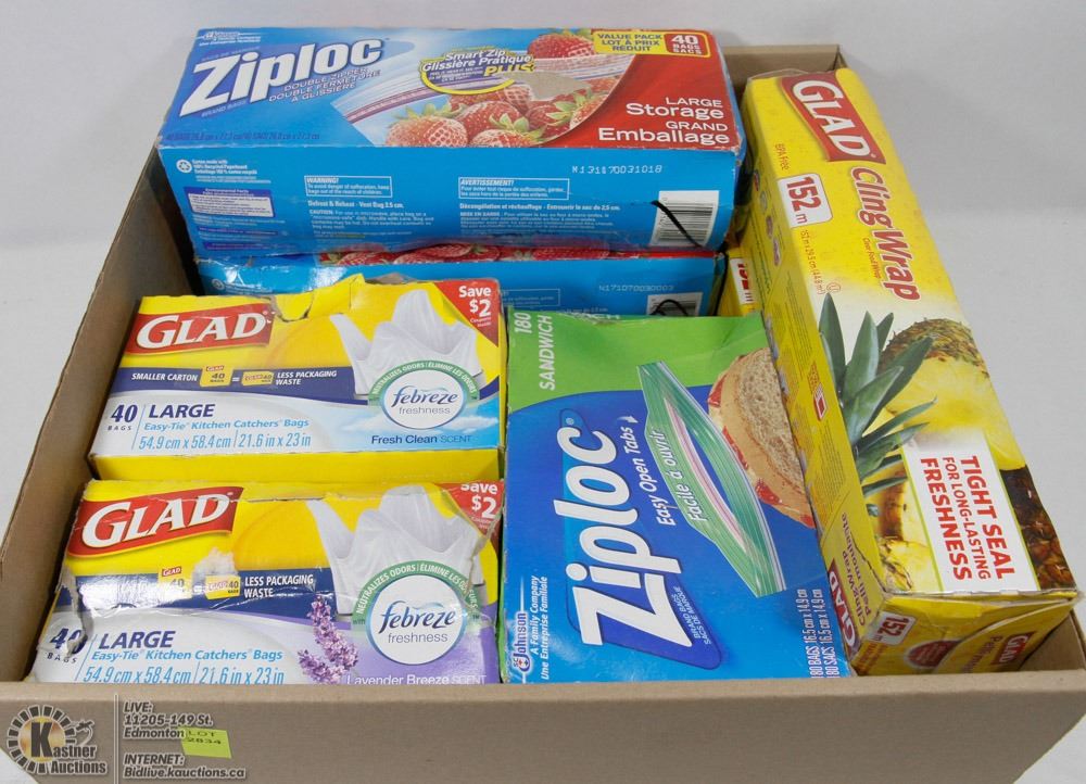 FLAT OF ASSORTED GARBAGE BAGS AND ZIPLOC BAGS