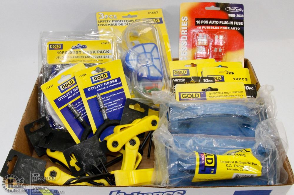FLAT OF ASSORTED HARDWARE SAFETY EQUIP AND MORE
