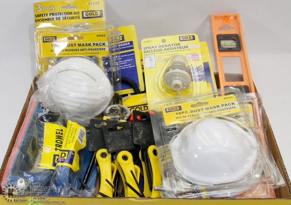 FLAT OF ASSORTED HARDWARE SAFETY EQUIP AND MORE
