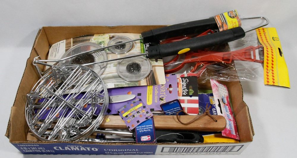FLAT OF ASSORTED KITCHEN ACCESSORIES.