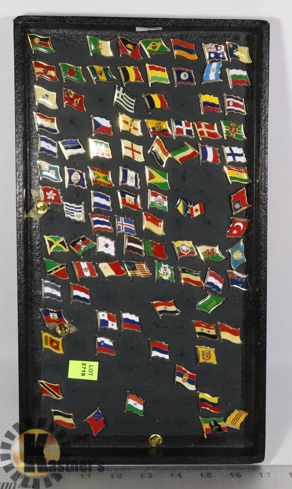 FLAT OF ASSORTED NATIONAL FLAG PINS