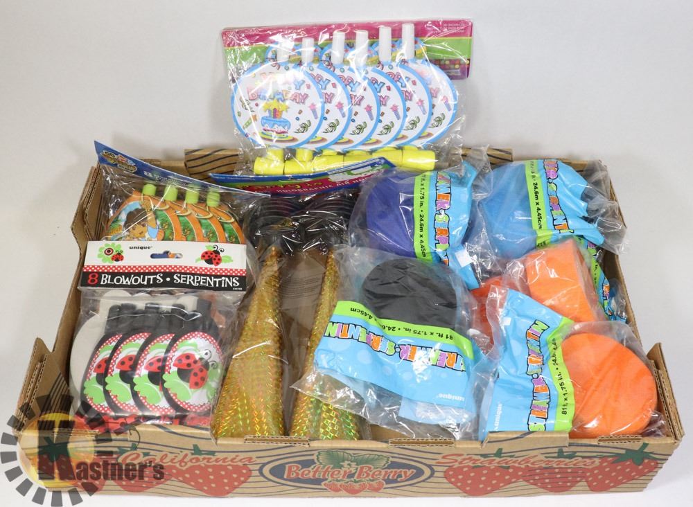 FLAT OF ASSORTED PARTY SUPPLIES