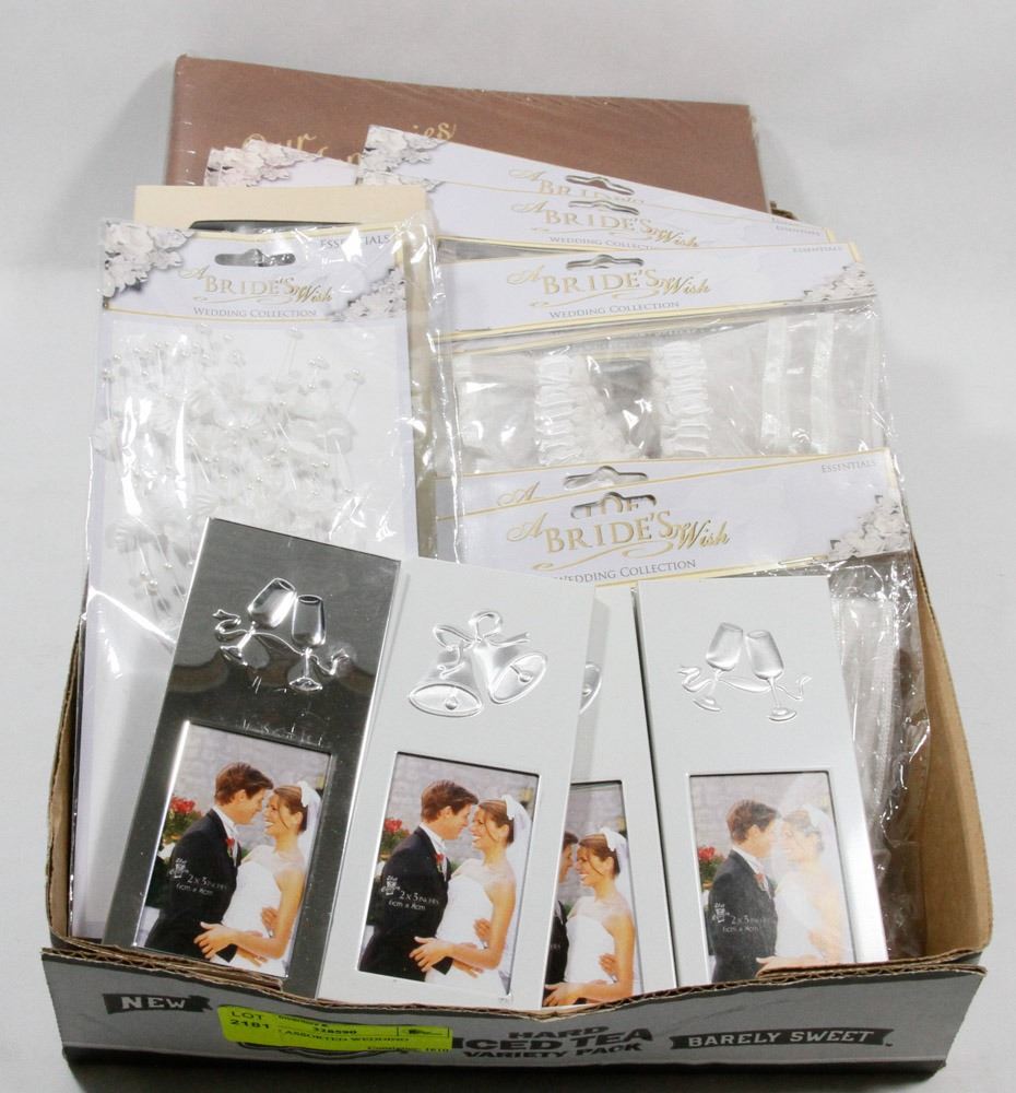 FLAT OF ASSORTED WEDDING DECOR.