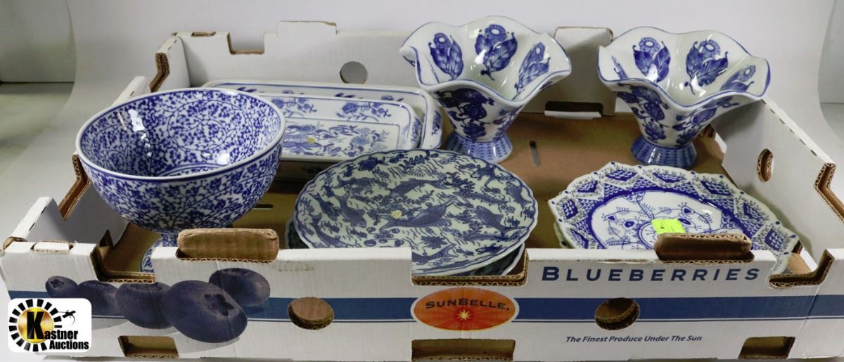 FLAT OF BLUE AND WHITE 9PCS PORCELIAN SET
