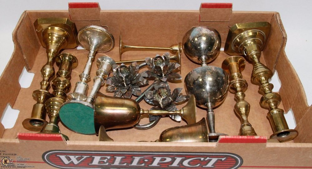 FLAT OF BRASS CANDLE HOLDERS