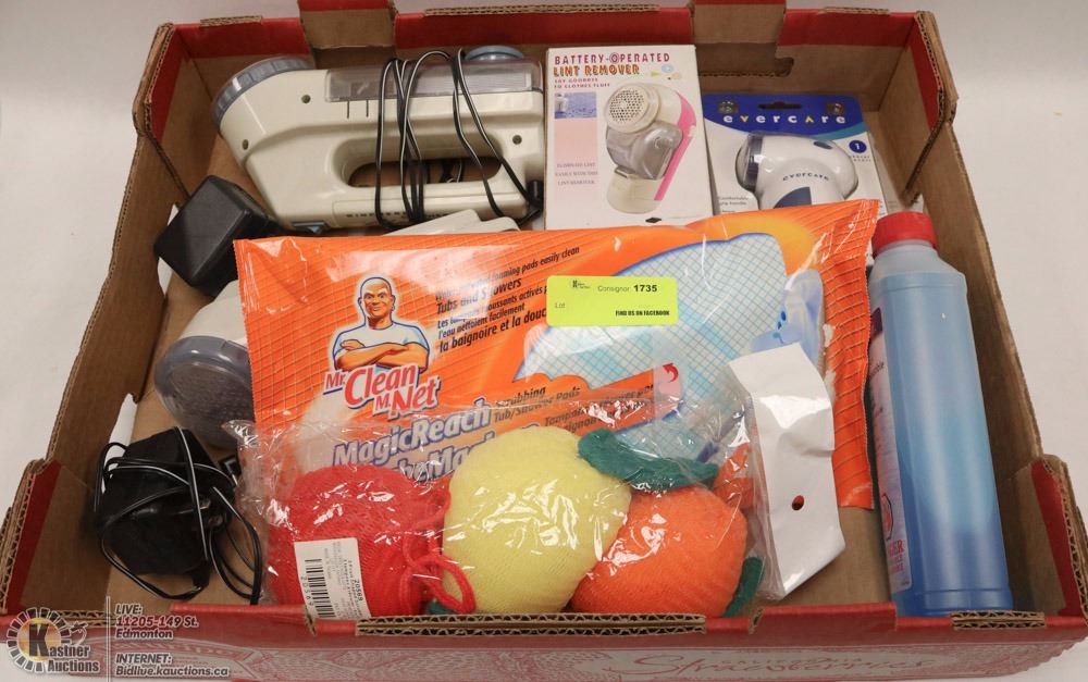 FLAT OF CLEANING SUPPLIES, AND LINT REMOVERS
