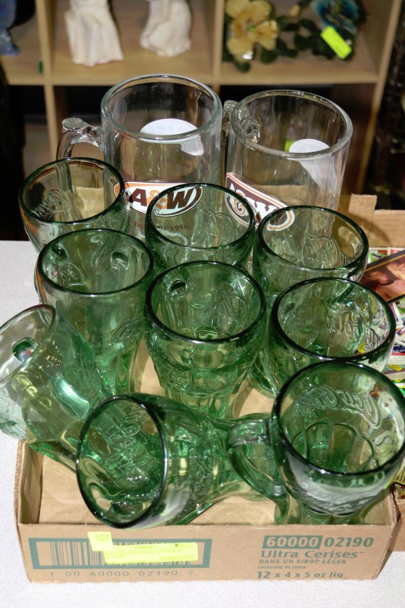 FLAT OF COCA-COLA AND A & W GLASSES