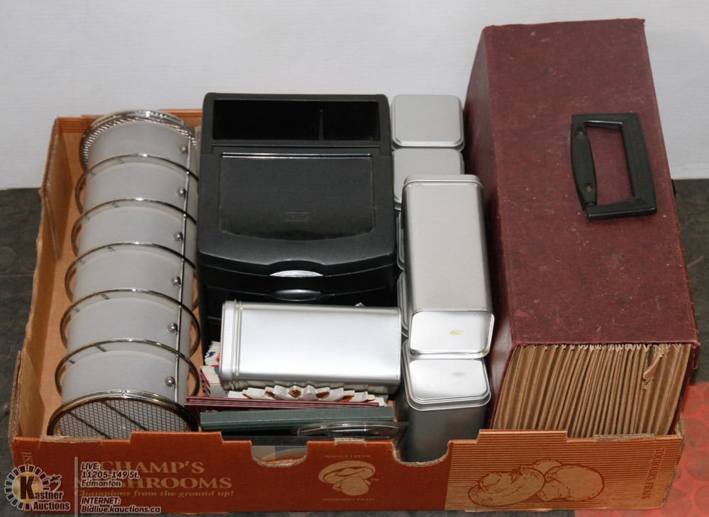 SMALL TINS (NEW) MULTI LEVEL ROUND ORGANIZER, BLACK DRAWER AND TOP OPENS ORGANIZER, KNICK KNACKS