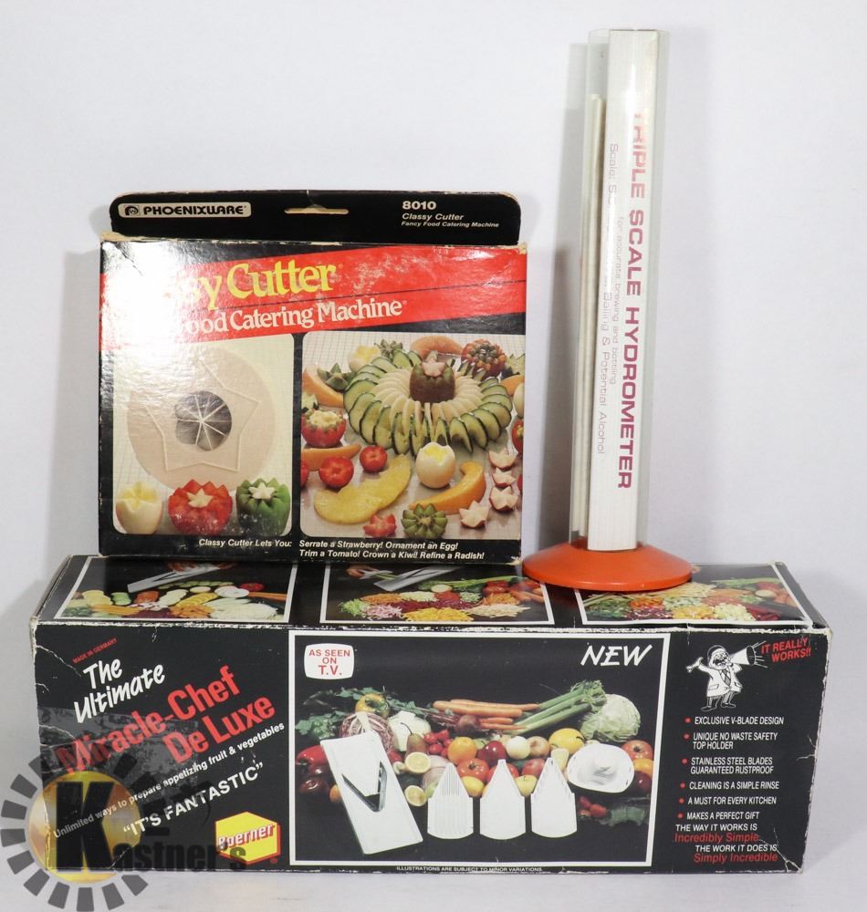 MIRACLE CHEF DELUXE SLICER, CLASSY CUTTER FANCY FOOD CATERING MACHINE, TRIPLE SCALE HYDROMETER - HOME