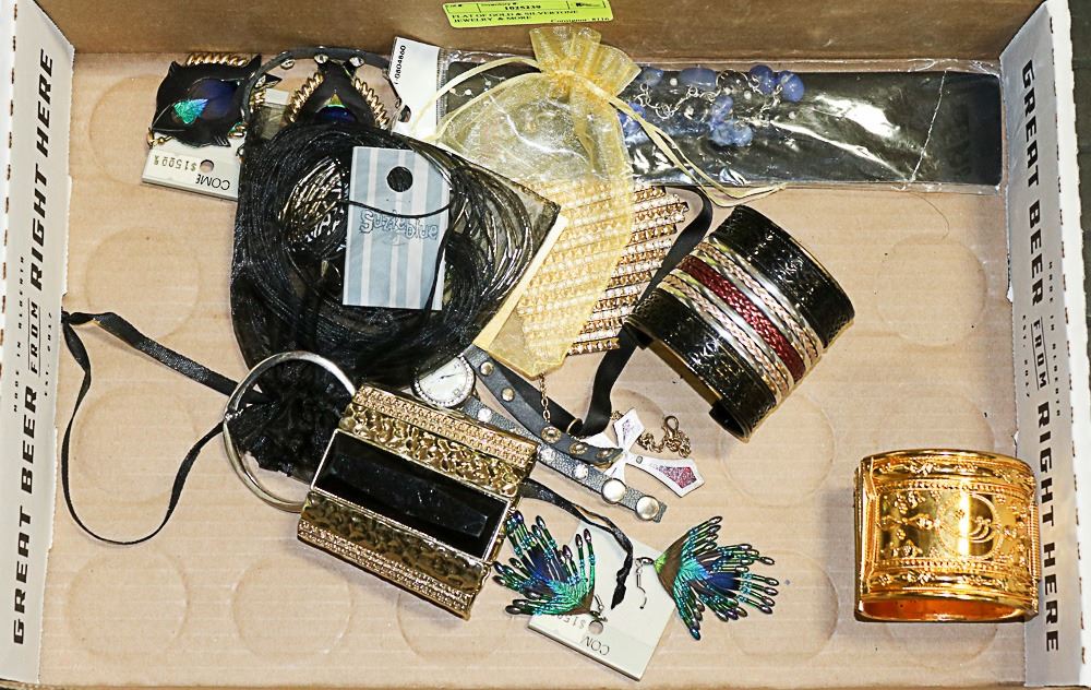 FLAT OF GOLD & SILVERTONE JEWELRY & MORE