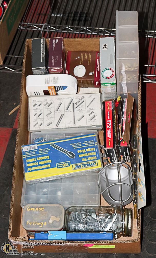 FLAT OF HARDWARE COTTER PINS, SMOKE DETECTORS,