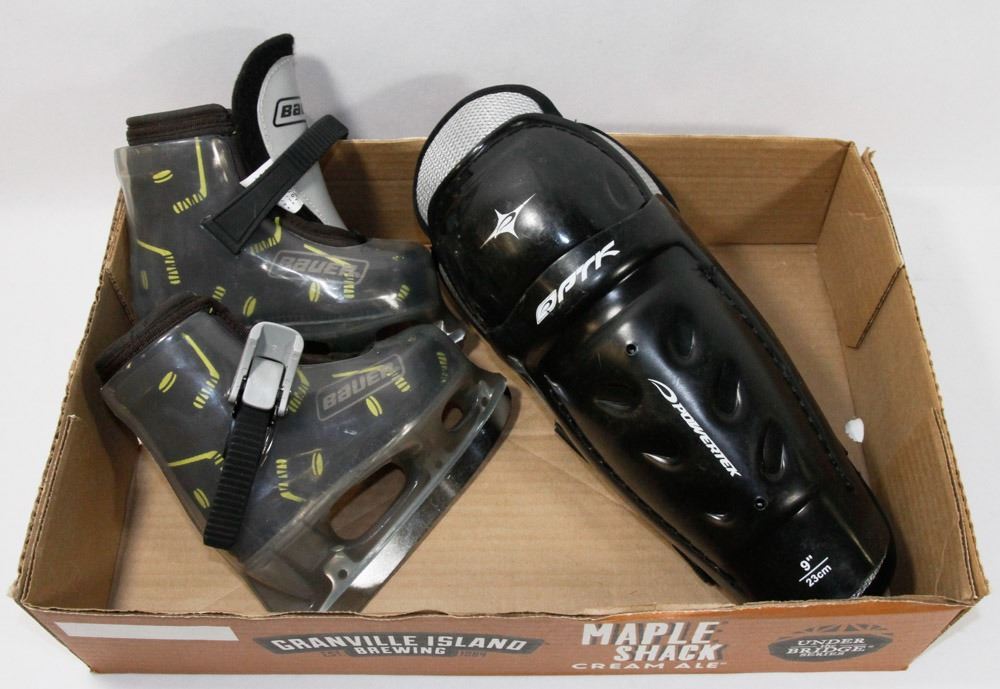 SKATES SIZE 6/7 Y AND 9" (23CM) SHIN GUARDS