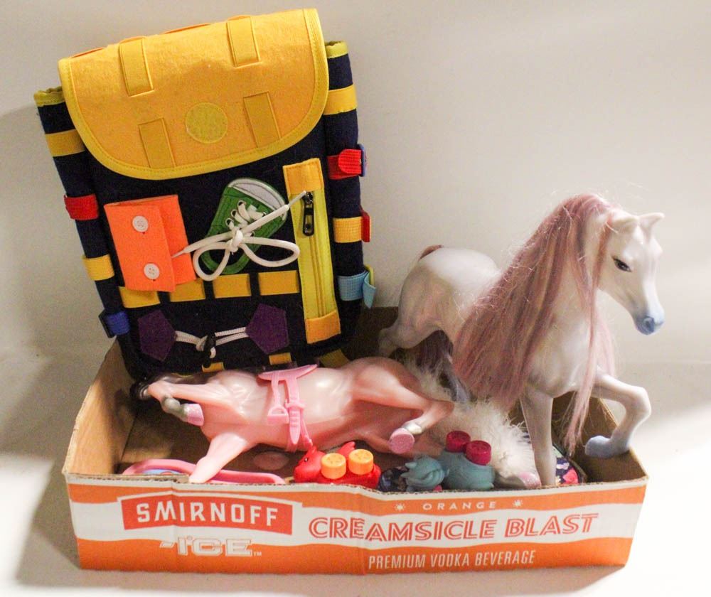FLAT OF KIDS TOYS INCLUDING BARBIE HORSES