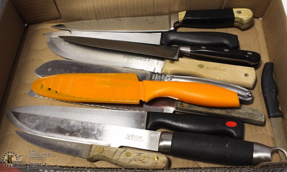 FLAT OF KITCHEN / RESTAURANT KNIVES - VARIOUS MAKE