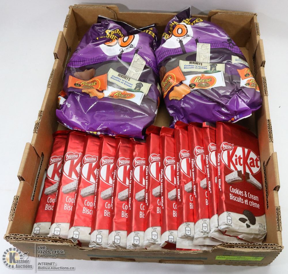FLAT OF KITKATS, COOKIES AND CREAM BARS AND OTHER