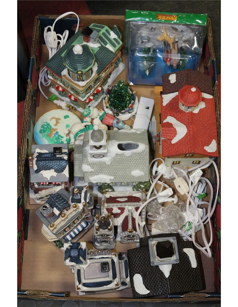 FLAT OF LIGHTED CHRISTMAS VILLAGE DECORATIONS