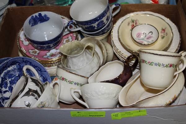 FLAT OF MISC. ESTATE DISHES/CUPS AND SAUCERS